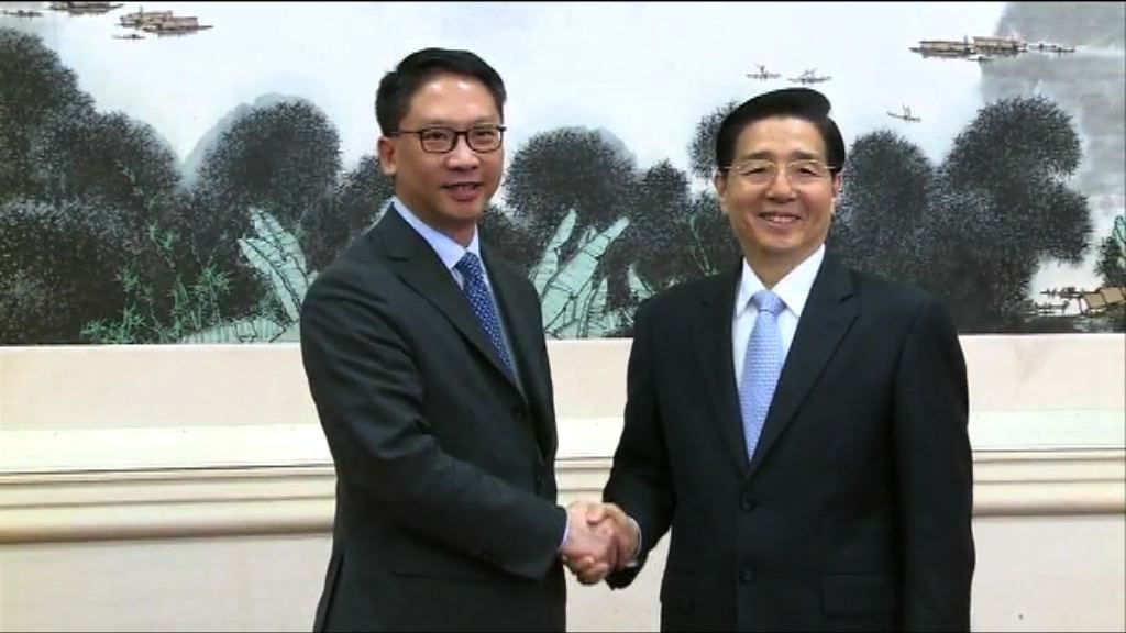 【now新聞台】在北京,律政司司長袁國強與公安部部長郭聲琨會面,商討兩地的通報機制。郭聲琨表示,希望兩地貫徹一國兩制方針,在時間、方式、內容和範圍等,進一步完善機制。
