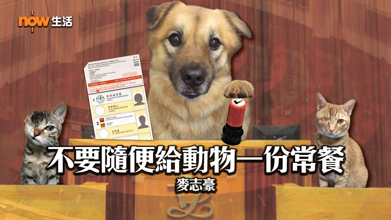 【now.com】立法會大選塵埃落定,各派別都在檢算多少議席的進帳。我也不例外,雖然我無黨無派,也不從政,卻最關心動物有多少「油水」。記得有一個晚上我在街上幫朱凱迪拉票,有途人挑機問:「朱凱迪當選你們有什麼油水。」哈哈,如今朱凱迪成了票王(雖然朱凱迪不喜歡人叫他票王),我第一個想法是:「動物點都撈到點油水吧!」