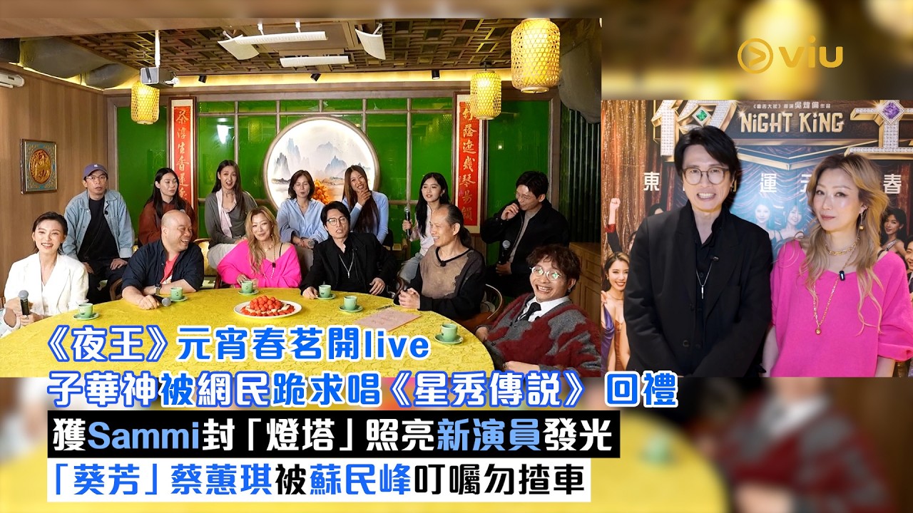 【Viu】《夜王》噚晚特別舉行「東日開運元宵春茗」,導演吳煒倫、黃子華、Sammi鄭秀文、Dee哥何啟華、王丹妮、李芯駖、阿卵楊偉倫、小野盧鎮業、楊偲泳等熱鬧開live,同場更特邀蘇民峰師傅妙論各位嘉賓馬年運程。有網民要求若《夜王》票房破億,希望聽到子華演繹Sammi首《星秀傳說》 [Shine一次 Version] 作回禮,而導演就透露《夜王》原聲大碟正籌備中,子華表示:「好高興聽到佢哋已經做緊(隻碟),完全知道係冇預我,唔好俾我搞散!」