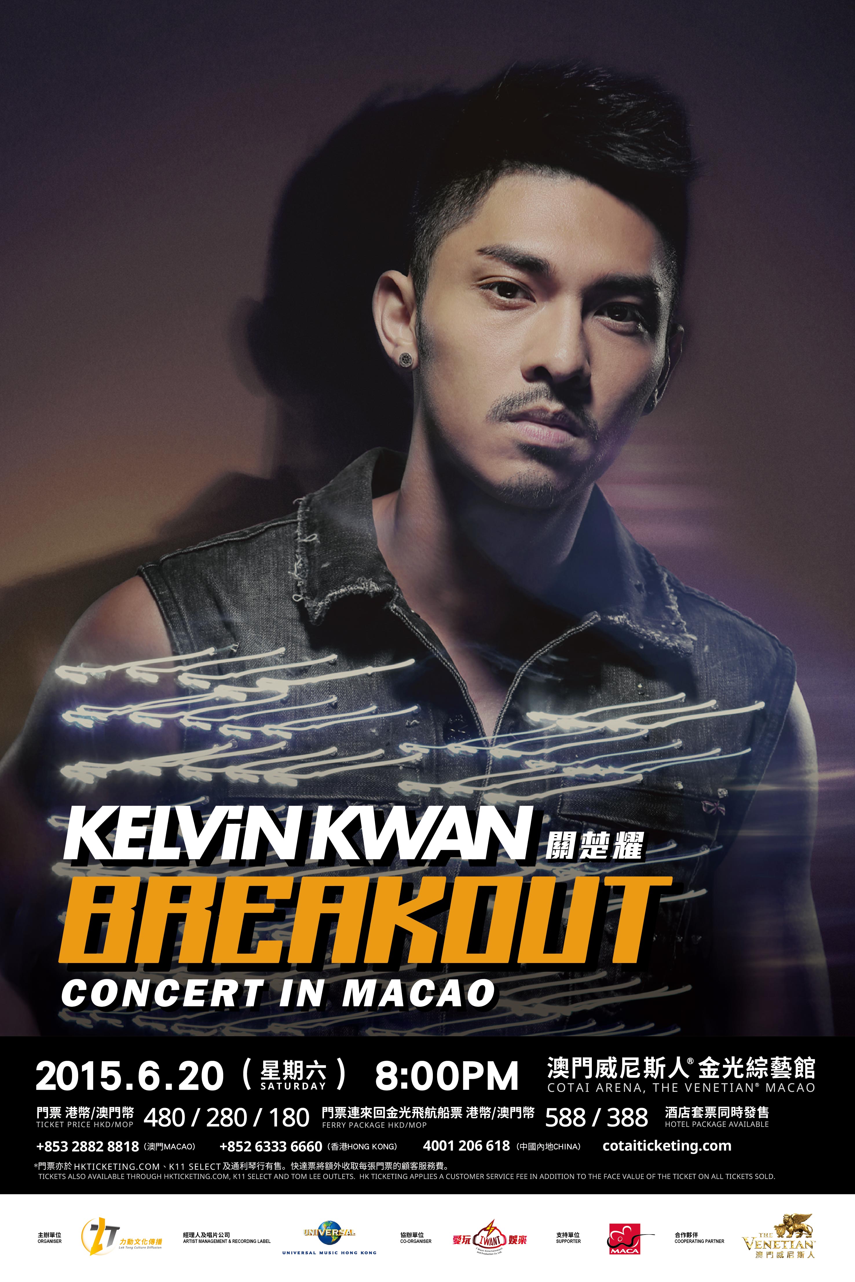 【now.com】關楚耀(Kelvin)最近密密操fit練大隻,準備一個月後的《關楚耀BREAKOUT演唱會》澳門站,以最佳姿態示人。第一次衝出香港有個人演唱會,Kelvin十分重視,而且心情興奮,演唱會又請到陳曉東、孫耀威等做嘉賓,Kelvin又話嘉賓都是他逐一自己邀請的,他說:「孫耀威係我好兄弟,大家同一間公司,一直俾好多意見我,所以私底下變成老友。他的經典歌我都好喜歡,第一次衝出香港開騷當然不少得佢!」而Kelvin偶像陳曉東有機會同台演出,Kelvin仲話相當期待:「一直夢想跟陳曉東同台演出,今年年頭特地去了澳門威尼斯人睇寶麗金演唱會,又係台下一路跟住陳曉東唱,幻想自己能夠係同一場地跟他合唱。如今有機會,所以親自邀請佢,多謝他專程飛嚟做我演唱會嘉賓,好期待!」
