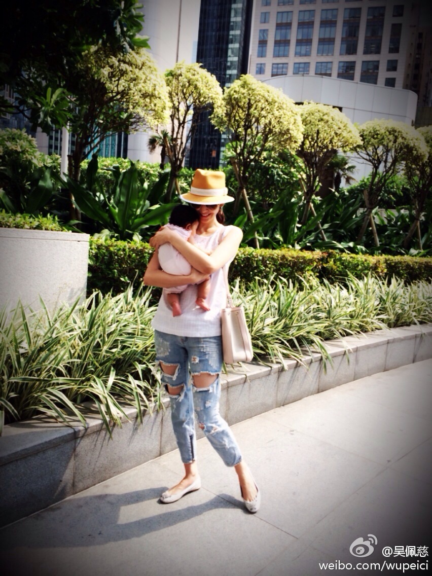 吳佩慈去年為老公紀曉波生下一女。(微博圖片)