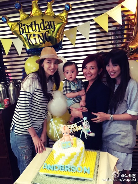 吳佩慈早前出席梁靜茹兒子的派對時,腹部微隆惹來再有孕之說。(微博圖片)
