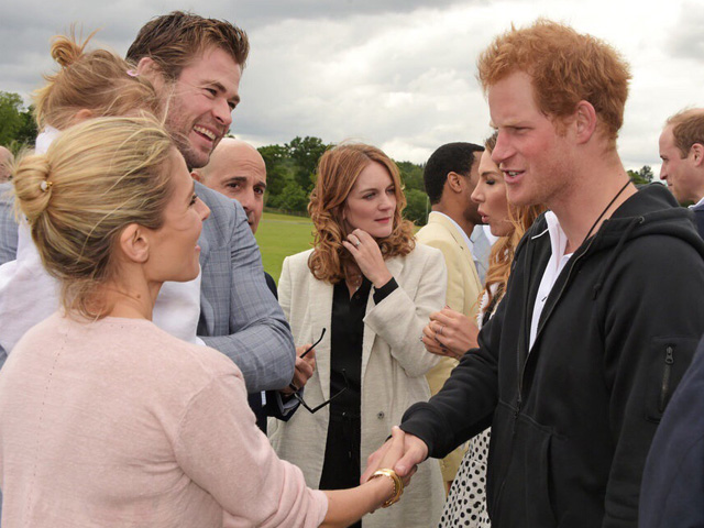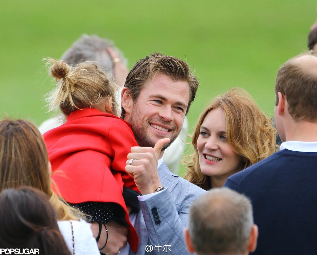 【now.com】主演荷李活電影《雷神奇俠》(Thor)的型男基斯咸士禾夫(Chris Hemsworth)日前出席在英國倫敦舉行的Audi Polo Challenge活動。一向型仔的基斯,帶埋老婆Elsa Pataky同囡囡India出席活動,活動期間又遇上英國皇室成員,包括威廉和哈里王子等,期間兩位王子都逗基斯的India玩。
