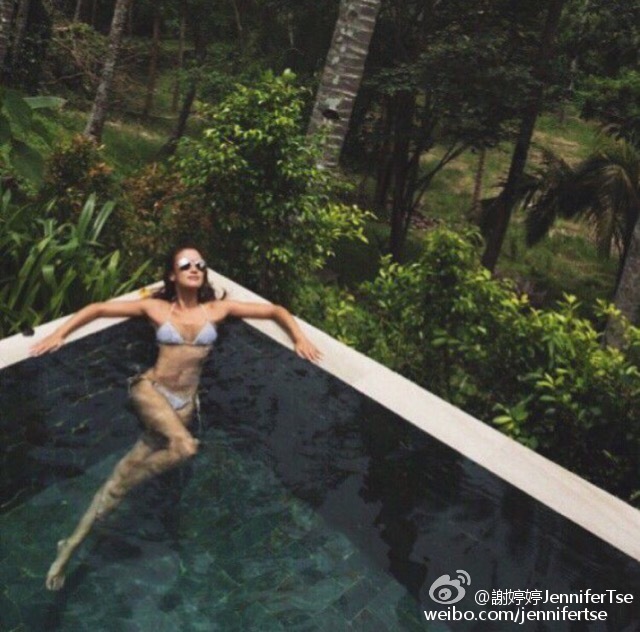 【now.com】鬼妹仔性格的謝婷婷,一向出席活動都會性感打扮示人,大騷一身古銅膚色。近日天氣炎熱,正好去海灘晒太陽玩水。今日下午婷婷在微博貼出在露天泳池晒太陽的相片,穿上三點式比堅尼的婷婷,盡騷美好身段,坐在泳池一邊,非常寫意,並留言寫上:「泳池派對,誰跟我來?」粉絲看到後,都留言大讚婷婷好身材。