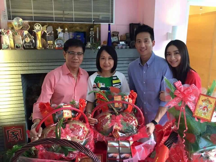 昨日Kary家人又按照傳統,由準新郎Brian(右二)做過大禮儀式,送上巨型龍鳳禮餅等。