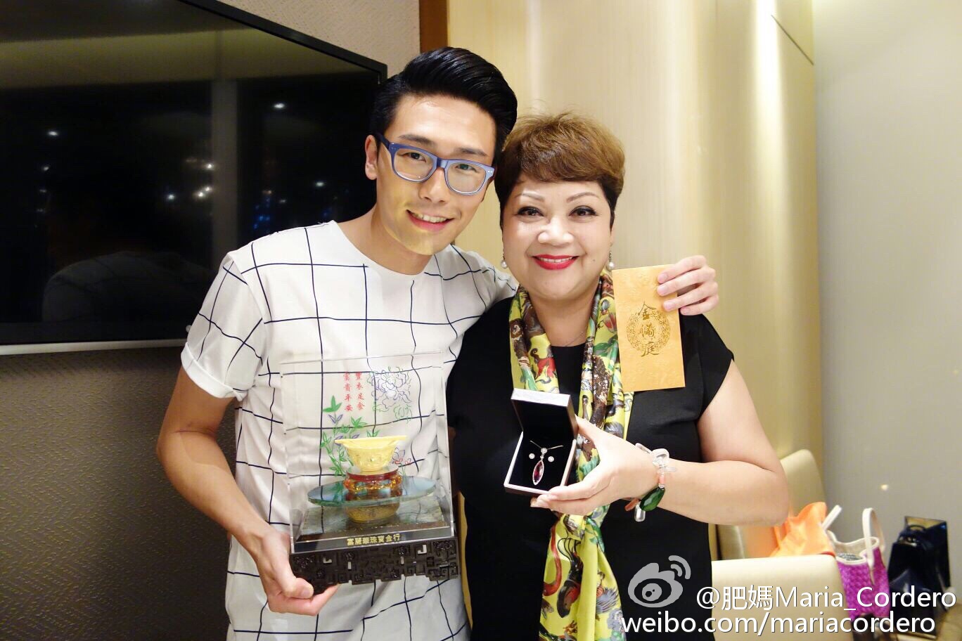肥媽前日在微博晒相,表示自己與6號正式上契,又送給契仔金碗、金筷子及大利是。肥媽更在上契晚宴上,乘機追問契仔何時成家立室,因為她身為契媽,一定會送龍鳳金鐲予未來契新抱,更承諾每一個契孫都會收到金器及大利是。至於6號就特別買了紅水晶頸鍊及耳環送給肥媽回禮,因為覺得紅水晶又紅又閃,十分適合肥媽作登台時候用,亦希望肥媽下次可以帶他一齊登台。
