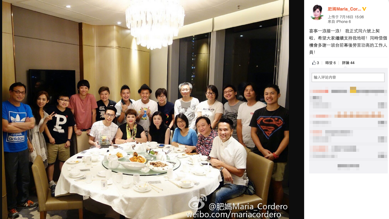 肥媽前日在微博與大家分享上契喜訊,又借機多謝一眾工作人員。(微博圖片)