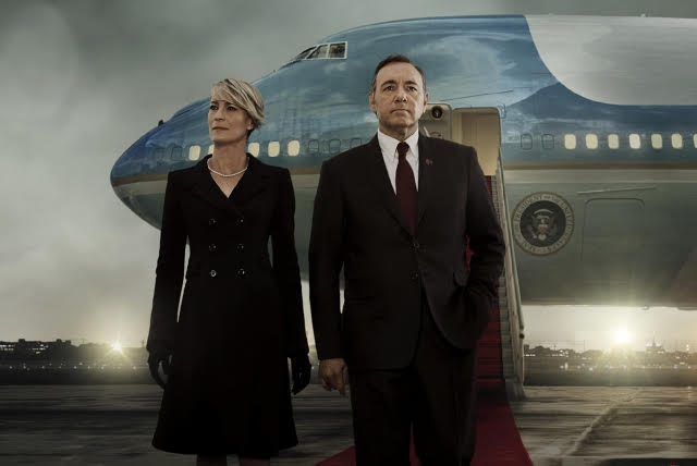 《紙牌屋》不但有份角逐最住戲劇,奇雲史柏西及羅賓活麗亦會分別爭奪戲劇組最佳男女主角。(網上圖片)