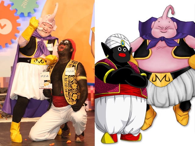 以身體柔軟度見稱的Coffee,即場表現一字馬,但一落地就不慎「爆呔」,幸好她有「打底」,做足預防措施。而喬寶寶扮演波波先生可謂最大犧牲,用了4小時化妝,把臉、身、手都塗成全黑,但他卻笑稱這個角色是為他度身訂造:「我只是做自己,不過再黑一點。」原來喬寶寶的兒子也喜歡龍珠,而他媽媽看到他波波先生造型的照片後,則「嚇到呀媽都唔認得」。