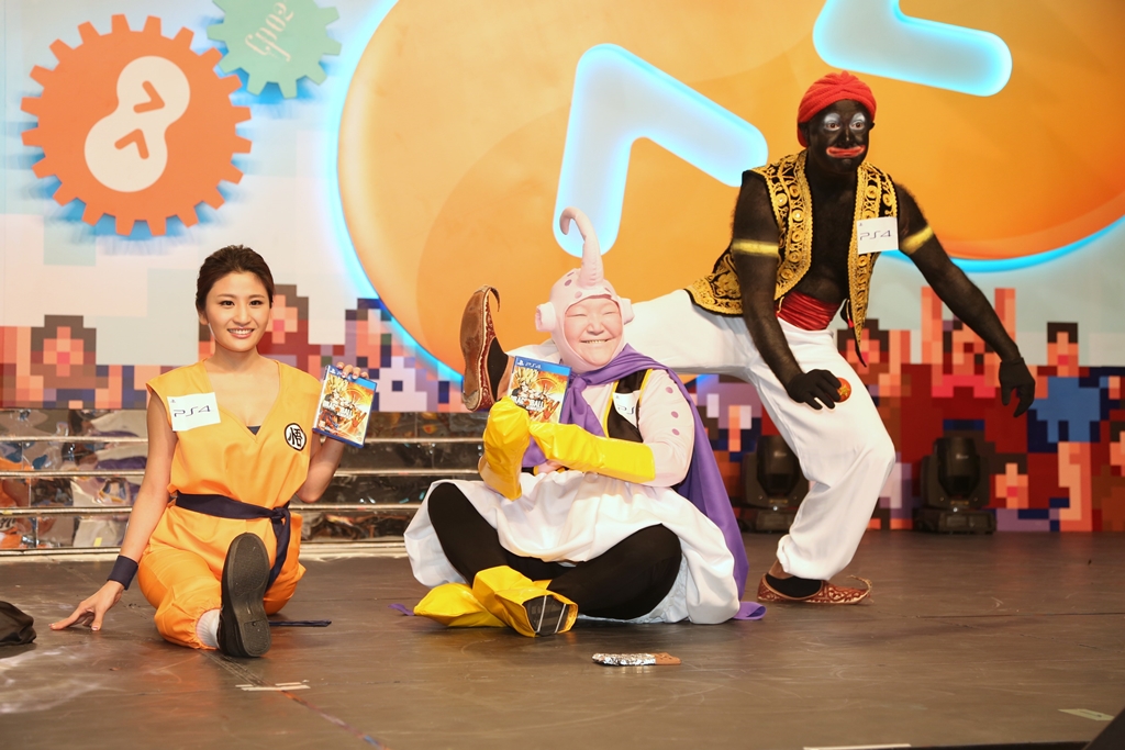 【now.com】我最期待的畫面出現喇!魯芬、林芊妤(Coffee)及喬寶寶,今日出席PlayStation®動漫節活動,宣傳PS4™熱賣遊戲《Dragonball Xenoverse》。三人皆以《龍珠》經典人物造型現身,Coffee扮演的女版孫悟空雖然欠粗壯但低胸造型格外性感,魯芬BB與喬寶寶分別扮演魔人布歐及波波先生,精心的化妝更讓人拍案叫絕。