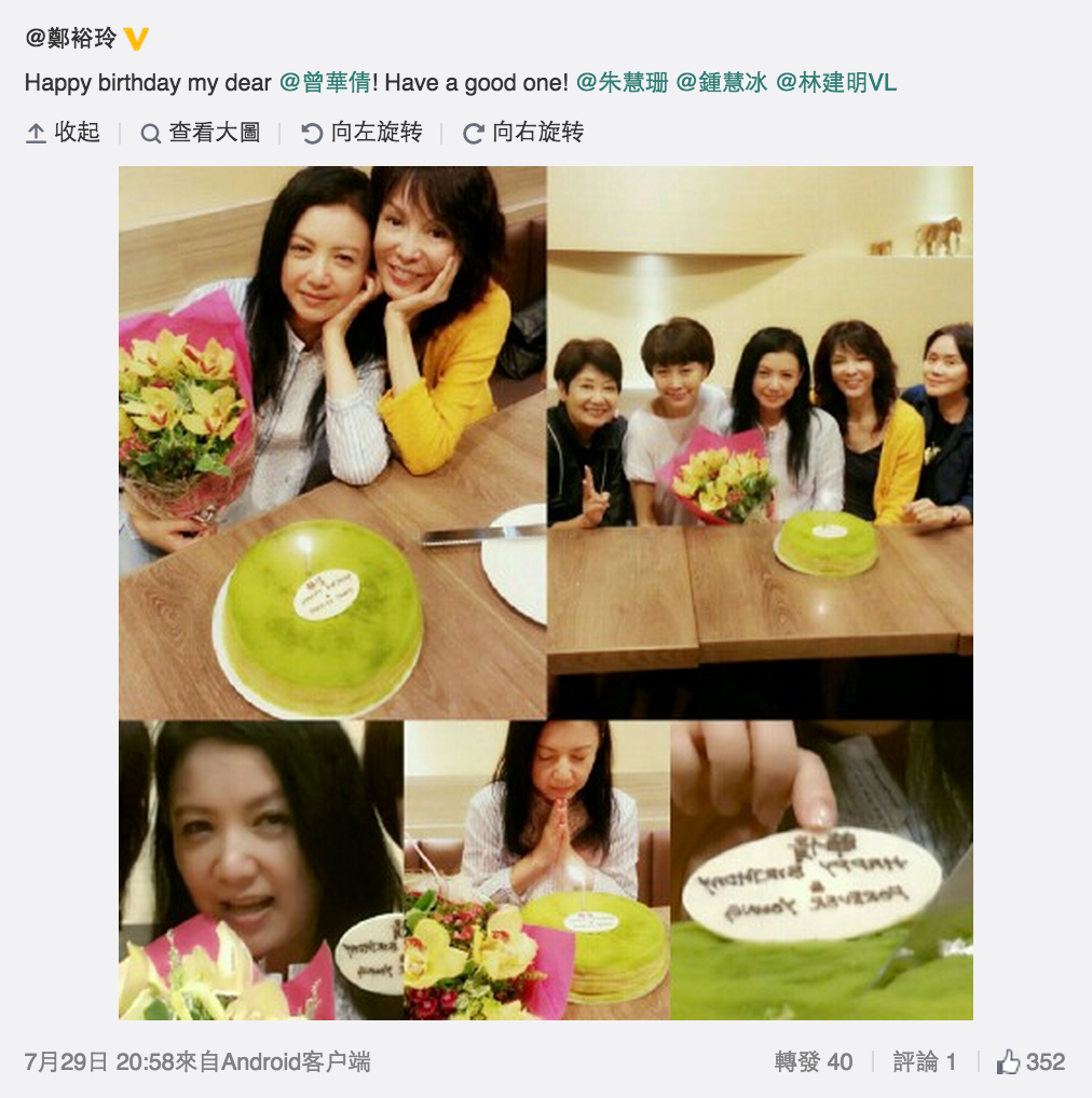 而其實過兩日(6號)就到曾華倩自己50歲生日,早兩日鄭裕玲就聯同林建明等人提前慶祝。