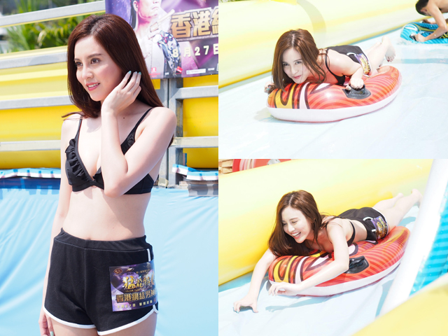 【now.com】雨僑昨日出席電影《猛龍特囧》的宣傳活動,參加於淺水灣舉行的水上活動,一眾女藝人許雅婷(Kabby)、唐紫睿(Hazel)、鄧洢玲(阿蛋)及新進網路紅人Kisa都有出席。五位女士以比堅尼泳衣上陣,大玩水上滑道。然而在娛樂圈打滾多年的雨僑竟不慎走光,玩遊戲時被卡在滑道中間,在旁的男士就好心做壞事,左右推雨僑時令她露出打底的泳褲及胸墊。不過,雨僑都好大方地回應事件:「我有打底,但都有驚會走光,所以叫助手幫我去買膠紙,但佢買咗文具膠紙,所以用唔到。」