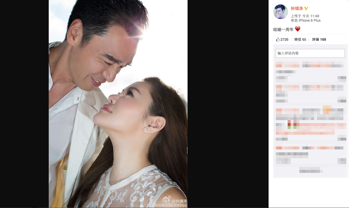 鍾鎮濤范姜情深互望 賀結婚一周年 鍾鎮濤范姜情深互望 賀結婚一周年 2015年8月26日 04:00 【now.com】鍾鎮濤(阿B)與范姜上年在峇里舉行婚禮,之後更在香港擺酒,大宴親朋。趁著結婚一周年,B哥哥今早在微博貼出上年在峇里的浪漫婚照,B哥哥甜笑望實老婆范姜,范姜又情深款款回望,非常恩愛。不少Fans都有留言祝福,而B哥哥好友譚詠麟更即時轉發及留言祝福。 鍾鎮濤在微博晒出一年前未曝光過的峇里婚照,慶祝與太太范姜的一周年結婚紀念。(微博截圖) B哥哥(右三)、太太范姜(左二)及四位子女一家六口,今年5月在香港補擺喜酒。(微博截圖)