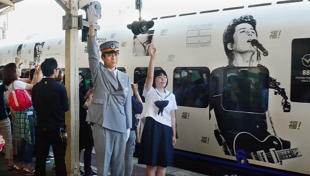 福山雅治列車前日啟程,車身印有福山肖像。(網上圖片)