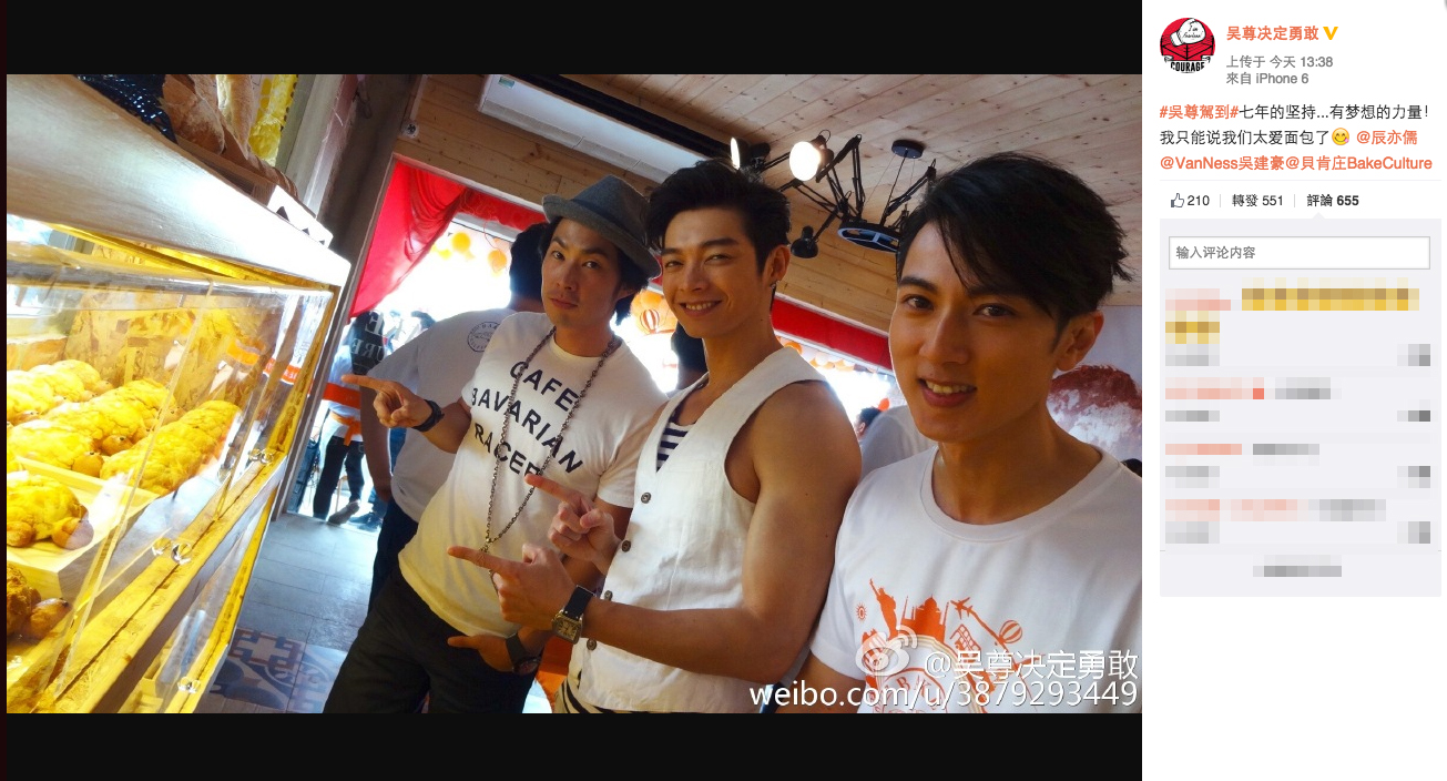 三人合資開的麵包店樓高三層,老闆吳尊、吳建豪、辰亦儒在開幕禮開始前到達麵包店準備,吳尊囡囡Nei Nei更陪同爸爸一齊剪綵,吸引了大批傳媒採訪。三位老闆又親自帶貴賓參觀麵包店,介紹麵包種類,更化身店員即場賣麵包。吳尊今日(28日)在微博晒出開幕禮當日相片,除了有大批Fans支持之外,辰亦儒更乘機穿上背心晒麒麟臂,成功突圍。吳尊更在微博留言說:「七年的堅持⋯有夢想的力量!」似乎意指三人籌備麵包店用了7年時間。不過在活動上,三人都不願透露投資金額,只說與一般麵包店不同,投資了很多金錢和人力。