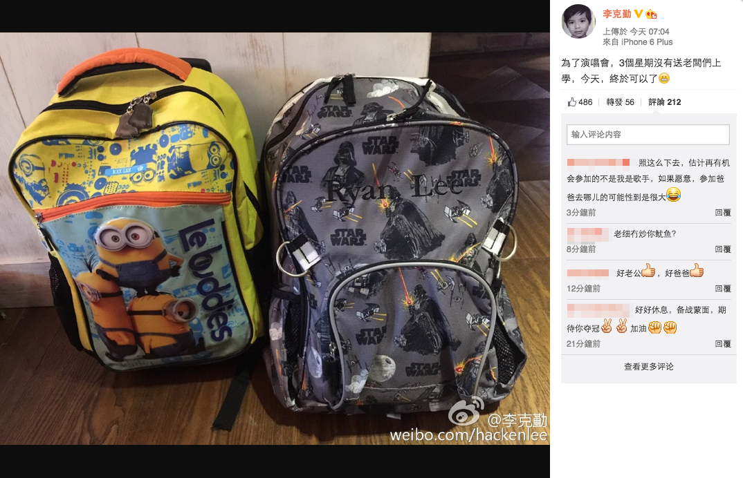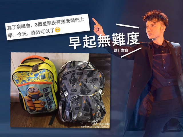【now.com】一連十二場《容祖兒李克勤演唱會2015》昨晚舉行尾場,容祖兒(Joey)與李克勤都表現感觸,感激有對方為好搭擋,感覺二人在台上就是為對方撐一把傘,互相支持。不過,除了容祖兒撐著李克勤,李太盧淑儀都好辛苦,要獨力打理家中事務,照顧兩名孩子,李克勤亦曾於第八場演場會上,送上親自作詞的《你是我的太陽》予辛勞的太太。演唱會終於圓滿結束,克勤雖然好攰,但未有爭取時間休息,反而立即做番廿四孝爸爸,今早早起送兩子返學。隔了三個星期,克勤終於可以與兩子共敘天倫。