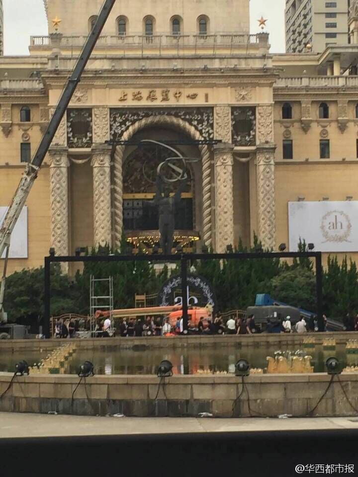 在Baby的婚宴場地上海展覽中心,已經聚集大批傳媒。(微博圖片)
