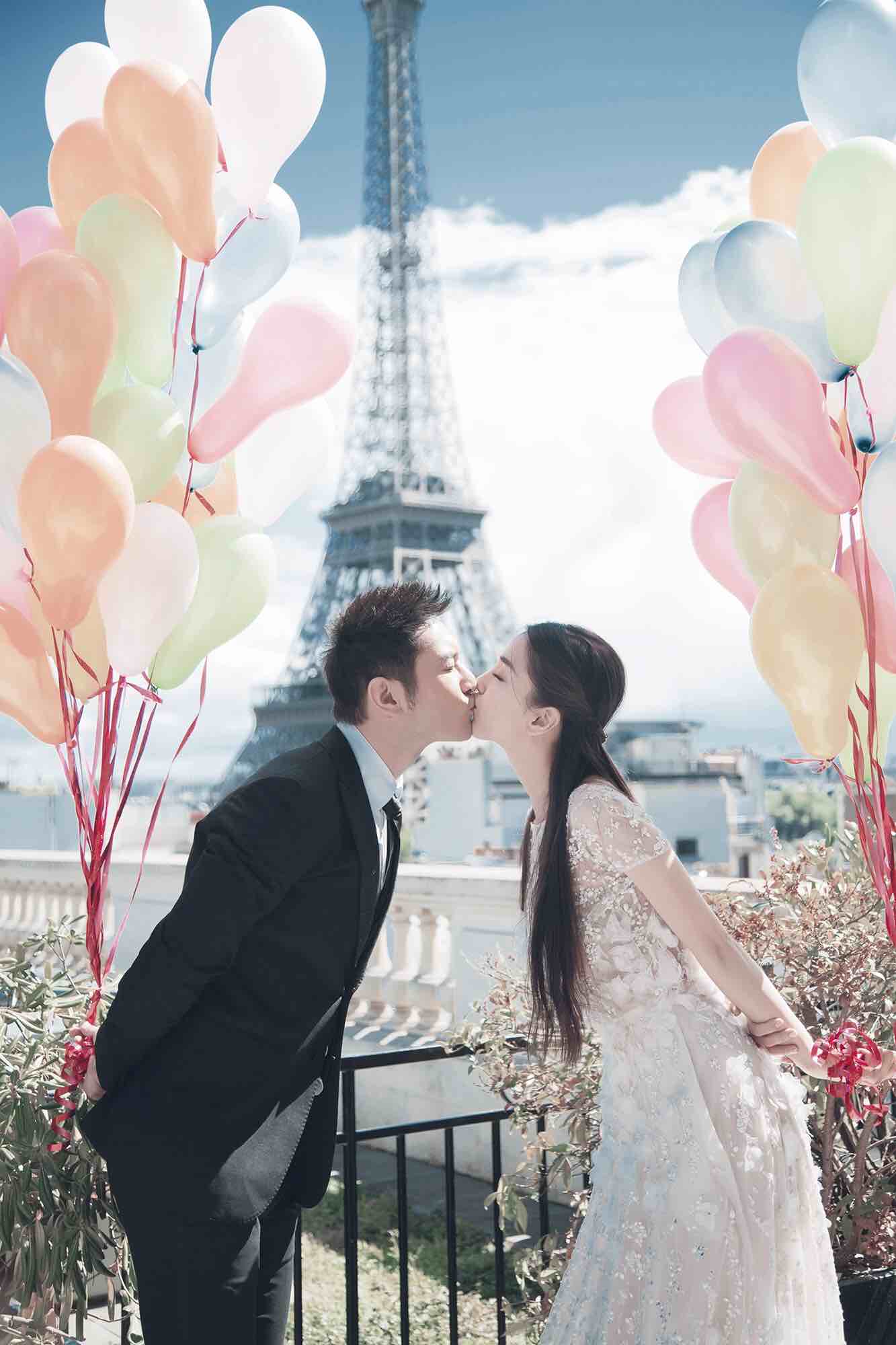 在巴黎鐵塔前咀嘴,勁Sweet!(微博圖片)