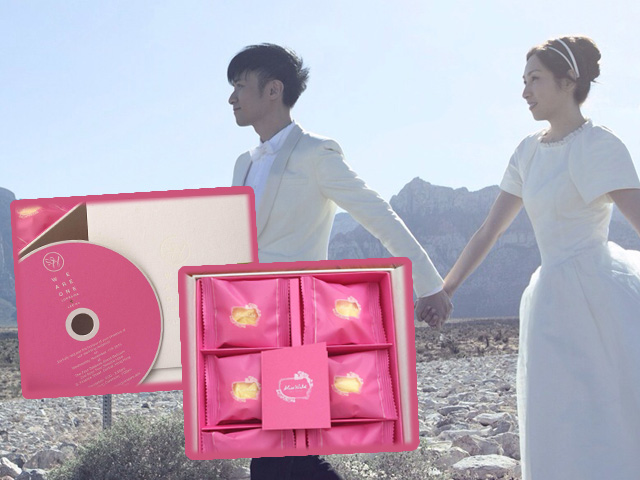 【now.com】去年在美國拉斯維加斯註冊結婚的古巨基,下月11日光棍節將補擺喜酒,基仔今日向親友廣派喜餅及喜帖。其唱片公司英皇娛樂的高層霍汶希(Mani)今日收到喜餅及喜帖後即刻上載微博同Fans分享,又留言恭喜:「請接喜餅,請大家為古巨基在11/11的大喜日子送上祝福,我祝古生古太百年好合,永結同心!」照片中,見到基仔都選用了自己品牌Alice Wild Luscious做喜餅,更以粉紅色做主題包裝,請帖上更見到兩人英文名Leo及太太Lorraine的字頭「LL」做標誌,非常浪漫。據知,喜餅喜帖由基仔設計,而且又為老婆Lorraine設計婚紗。