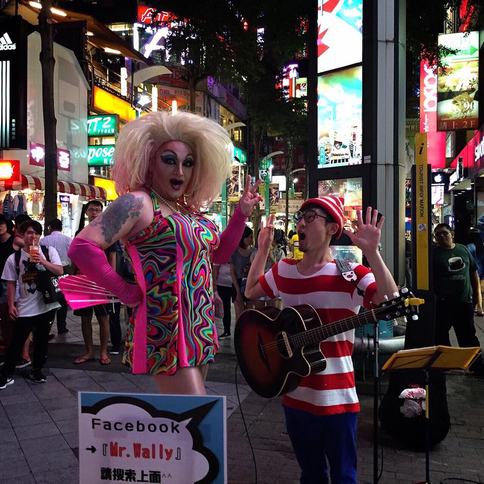 Mr. Wally(右)期望藉著不同地方演出,傳遞音樂美好。(Facebook圖片)