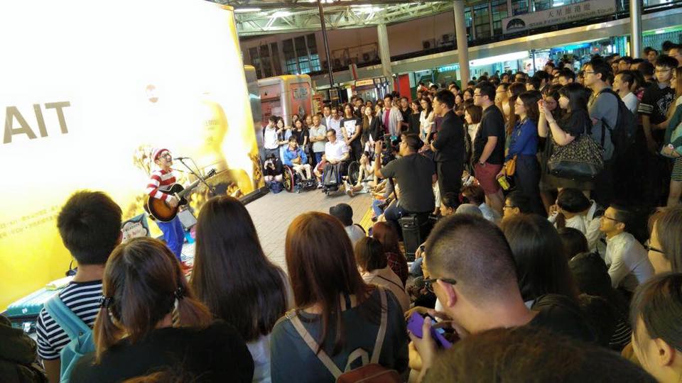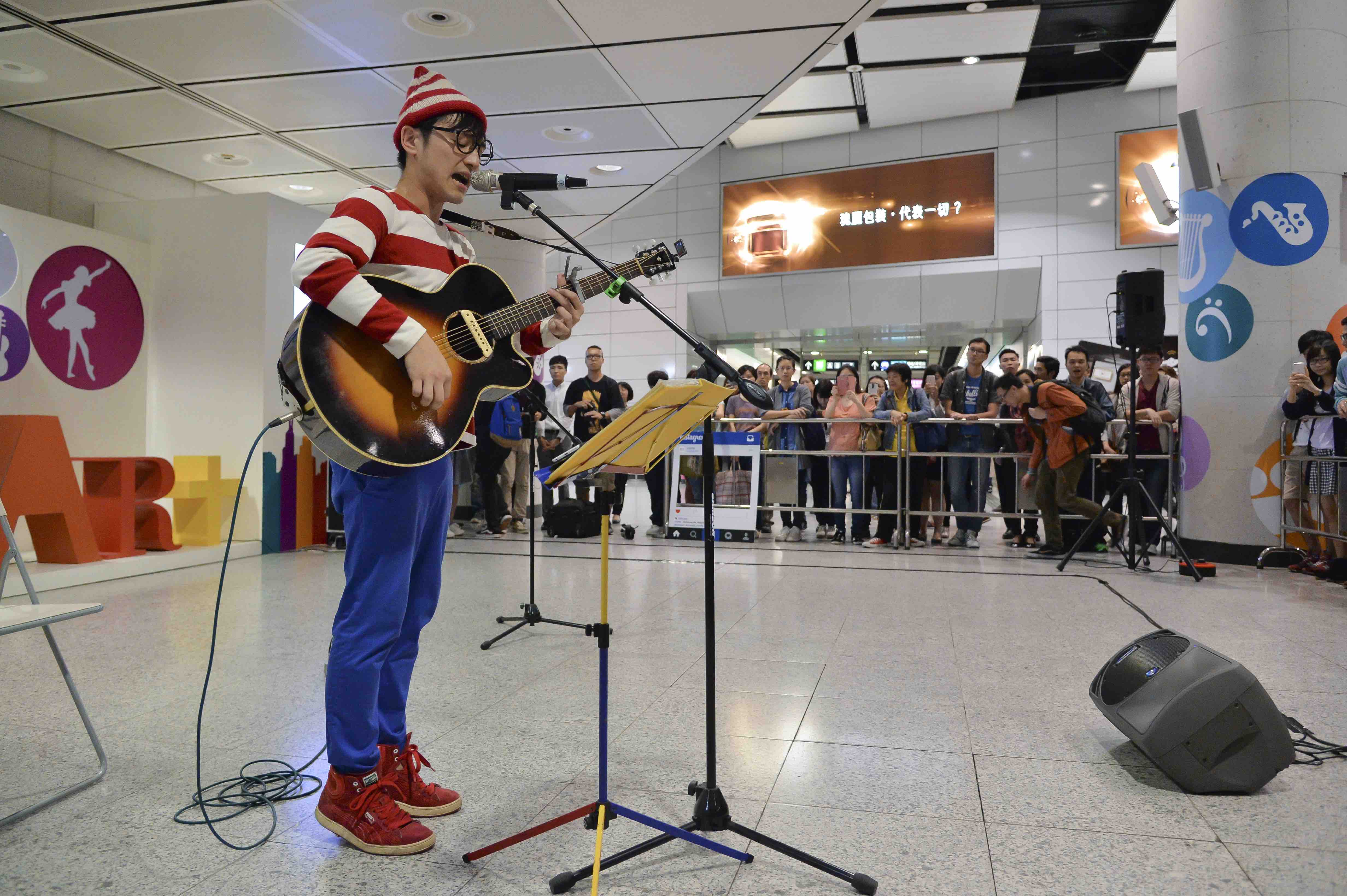 一向在街頭表演的Mr. Wally,昨日到港鐵香港站表演。