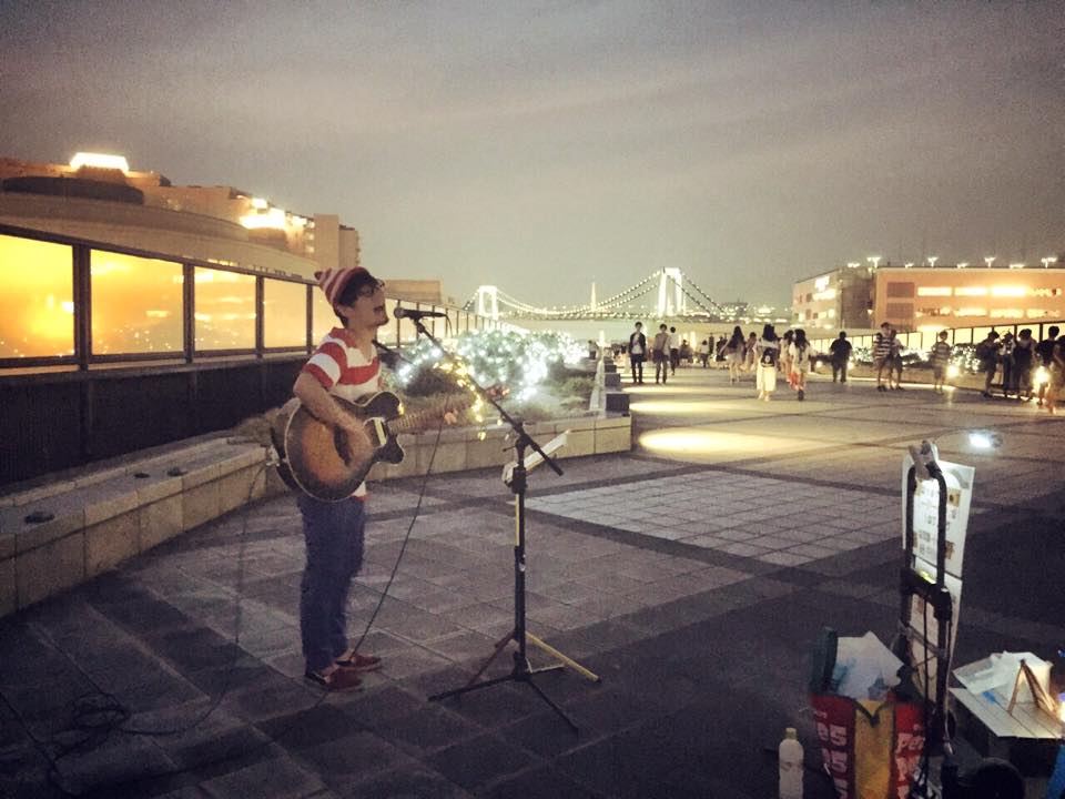 在日本街頭唱歌,Mr. Wally話一有警察到,就要即刻離場。(Facebook圖片)