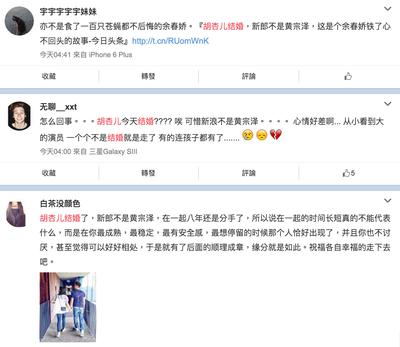 很甜蜜的愛的宣言,不過網民就非常不識相,竟重提曾和杏兒拍拖8年的舊愛黃宗澤,紛紛留言慨嘆新郎不是黃宗澤,更扯到每一對已分手的「無綫情侶」。亦有網民一語中的表示:「主角已出戲,放不下的是觀眾。」大家就好好祝福杏兒和她決定下半生要攜手渡過的Philip吧。
