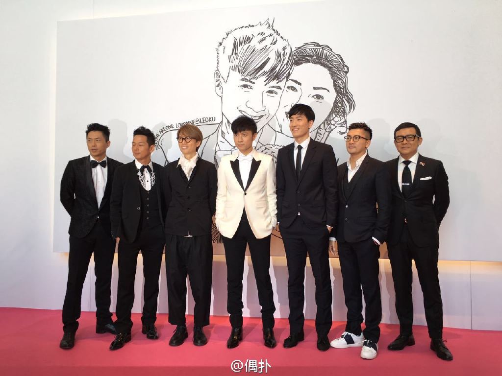 穿上白色西裝的古巨基就帶著兄弟團森美、吳家樂、黃子華、劉翔、雷頌德等見記者,反而未見古太,原來Lorraine好緊張:「已經試過?太太,但都係怕鏡頭,所以由我同兄弟幫手頂。」睇得出基仔真係好錫老婆,好體貼呀!