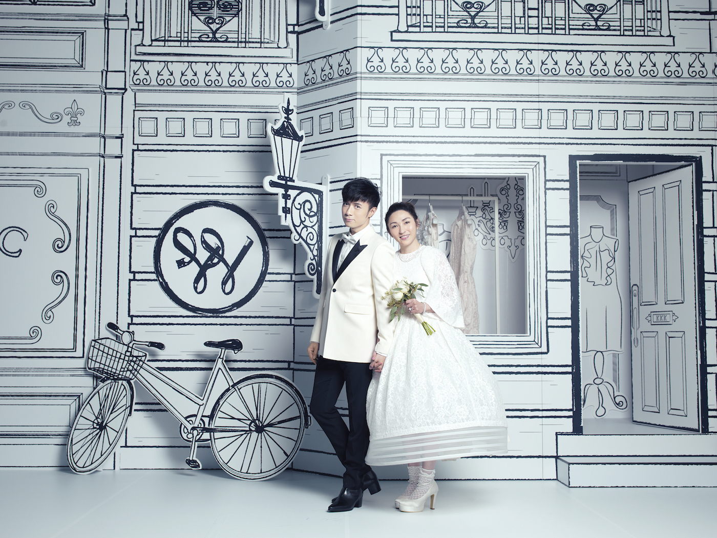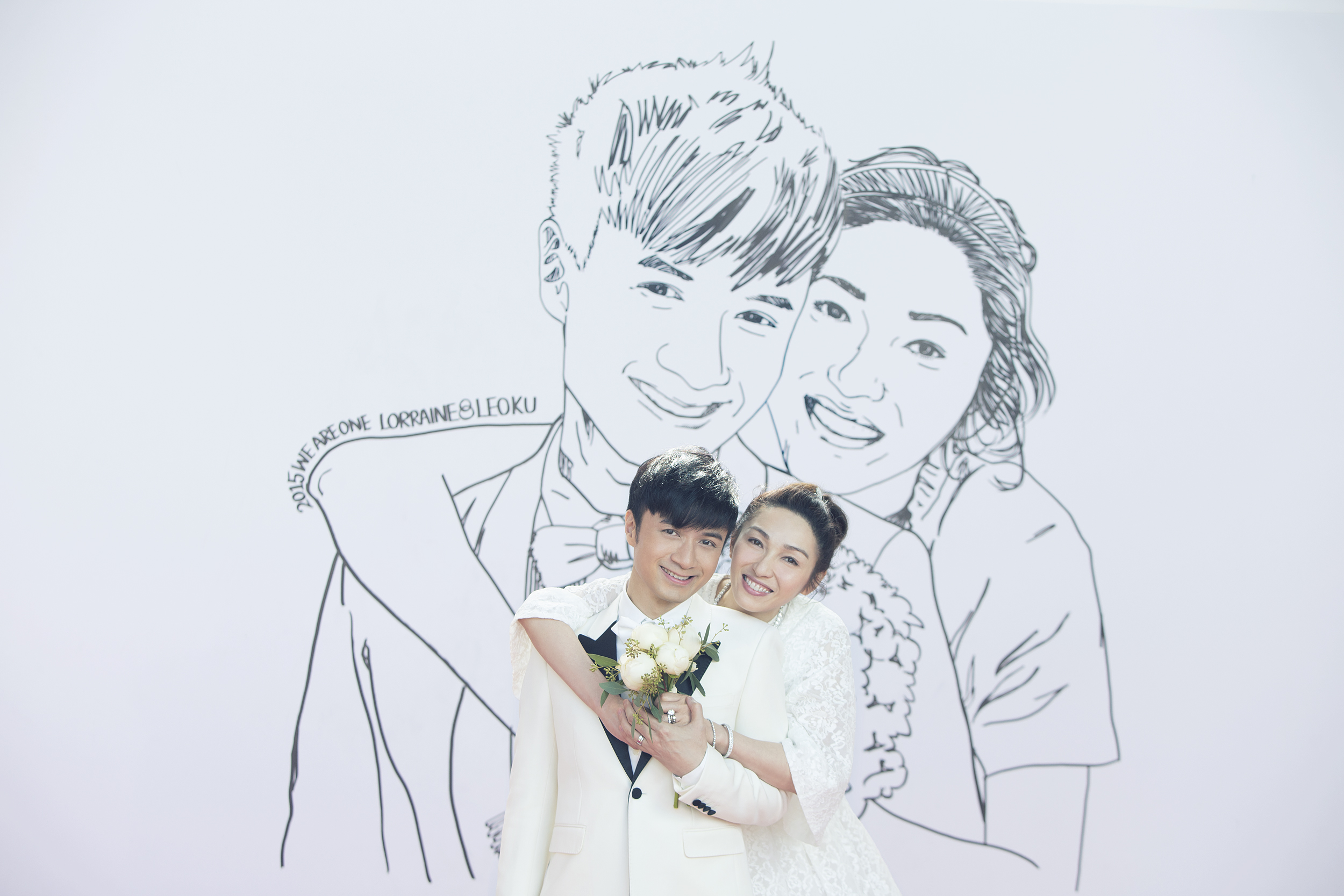 基仔為了給太太一個難忘的婚禮,事事都親力親為,除了早前的喜帖與喜餅設計都由他親自操刀外,現場一幅手繪巨型背板是基仔根據與太太的婚照,親手以marker花了將近八小時繪畫而成,充滿心思和愛意。會場又佈置了一條包含三間小店舖(音樂店、服裝店及蛋糕店)的手繪立體街道,是根據新郎哥畫下的藍圖所建成,代表著基仔與Lorraine在這20多個年頭裡,共同經歷及一起建立的心血結晶。