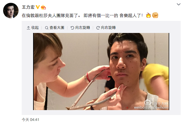 【now.com】台灣音樂才子王力宏經常都忙住周圍飛,到世界不同地方演出。今日凌晨王力宏在微博貼相,見到面上畫有一點點黑點,原來是倫敦杜莎夫人蠟像館的工作人員為他測量做蠟像,他留言說:「在倫敦跟杜莎夫人團隊見面了。 即將有個一比一的音樂超人了!」