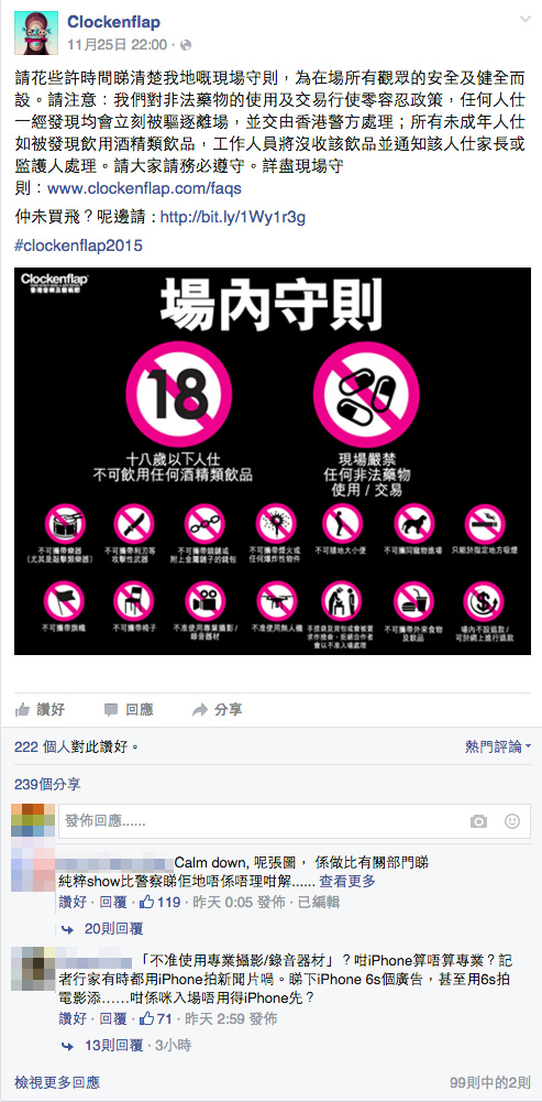 我們連呼吸都有規則,然後在埋怨Clockenflap列出16條規則?這不合理吧。