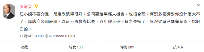 其實梁家樹系失勢,不用羅家英講,大家也是有目共睹,人都已離開公司一年有多,手下猛將走位稍慢也自然被打入冷宮。電視台向來都是一雞死一雞鳴,多年權鬥下來,因改朝換代而黯然離開的頂級藝人如恆河沙數。羅家英今年69歲,汪明荃68歲,兩個年近70的老行尊,多年來卻從未聽過他們為其他因派系而被不公平對待的死雞們發過聲。