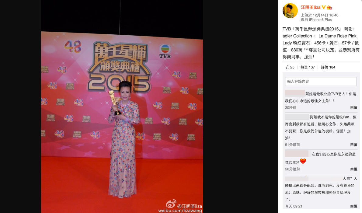 【now.com】《萬千星輝頒獎典禮2015》人散曲未終,視后獎項「爆冷」落到胡定欣手上,「大熱」汪明荃敗走,羅家英愛姐心切,在微博留下這個炸彈: