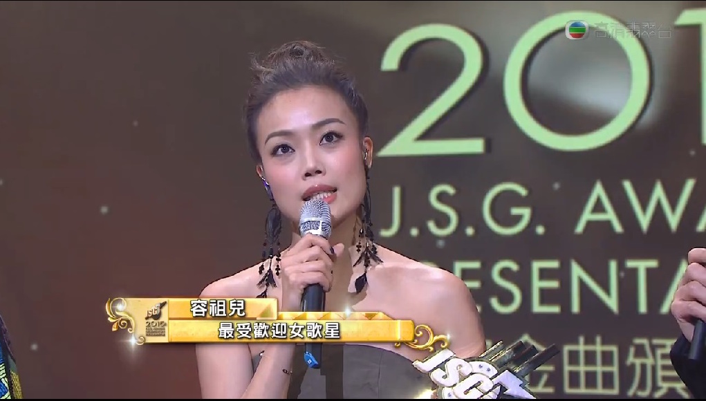 【now.com】每個頒獎禮,永遠是壓軸大獎最刺激最富娛樂性,未到最後一刻都不敢肯定大獎誰屬。不過前晚看TVB的《勁歌金曲頒獎典禮》,就確實是反高潮。全晚最好睇的一幕只有吳業坤淚崩現場,至於傳統的大獎最受歡迎男女歌星,結果張敬軒無風無浪地冧莊,而容祖兒更加是在別無他選下連續拿她第六屆,總數為十一次的「最受歡迎女歌星」獎。祖兒還要臨近節目尾聲才現身領獎,事後於慶功更直言今次有好多聲音,有人叫她唔好攞,但她覺得既然付出過努力,不會不好意思,無愧於心。