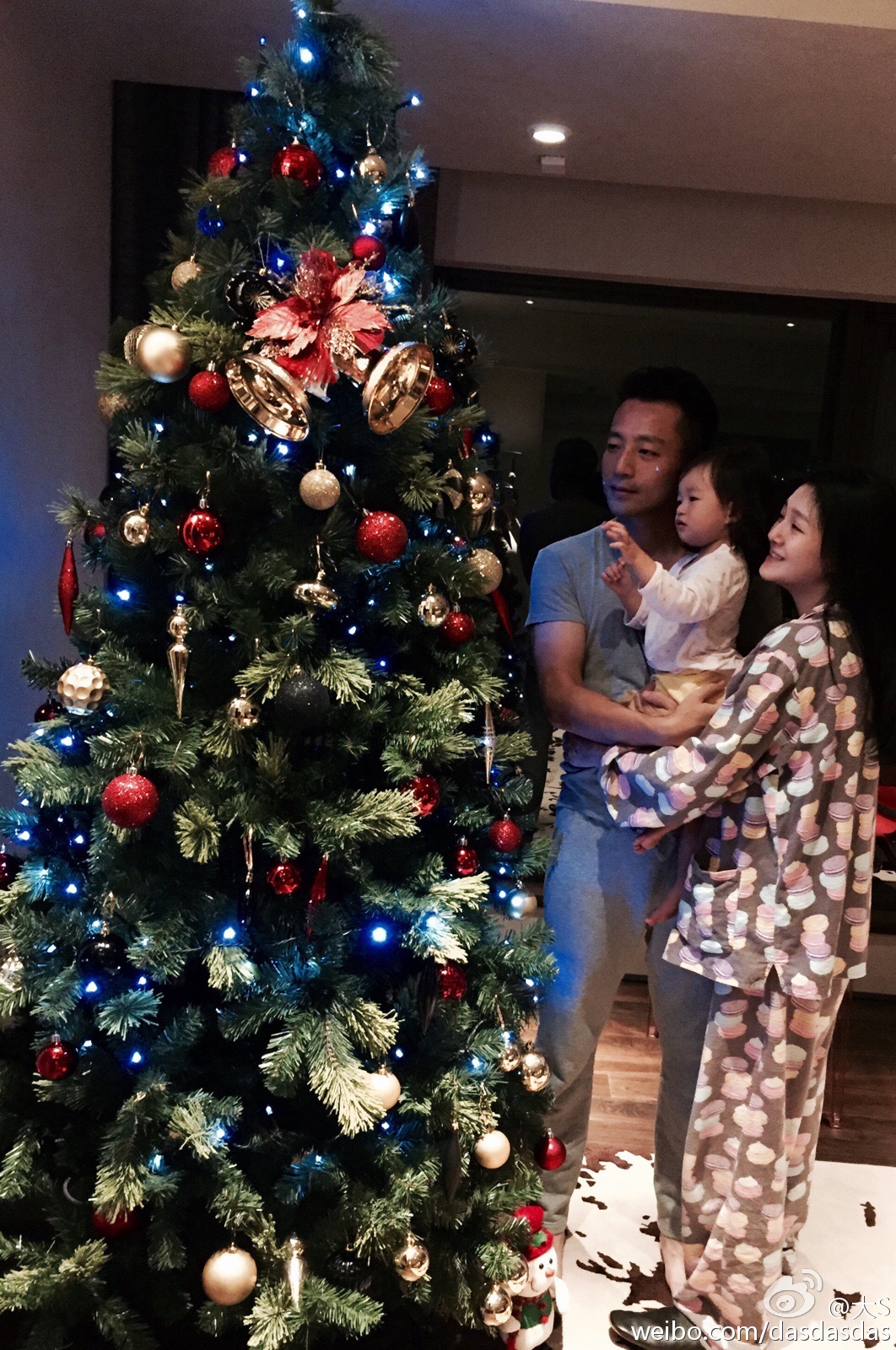 聖誕節期間,大S在家中抱女度過,刻意側身拍照。(微博圖片)