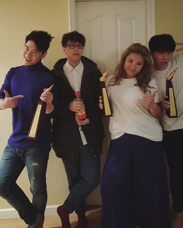 上次勁歌頒獎禮後坤哥就食「好東西」燒賣慶祝,今次佢就同「巨聲幫」的許廷鏗、胡鴻鈞再加鄭欣宜慶功。坤哥繼續搞笑,佢將自己3個獎分晒畀佢哋一人拎一個,自己就拎住支生抽,繼續行「草根style」。