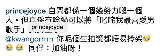 欣宜都有在instagram貼上同一合照,並搞笑寫道:「自問都係一個幾努力嘅一個人。但真係冇唸(諗)過可以將「叱咤我最喜愛男歌手」獎拎上手。你呢個生抽獎都唔易拎㗎,同伴,加油呀!」