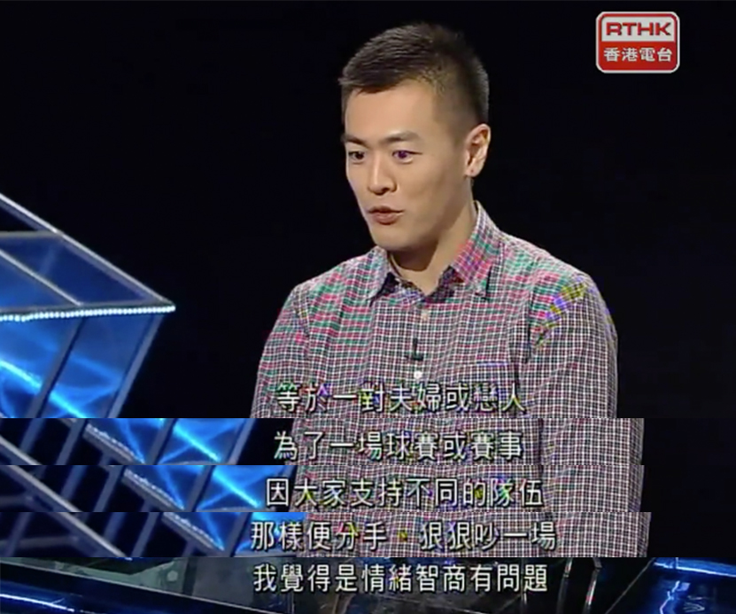 一場波支持不同隊伍,要去到嘈交的地步,即是類似曼聯躉同利物浦躉的敵對關係,如果劉生有真正投入過睇波的話,應該明白這是接近宗教層面的矛盾,是多年歷史積累下來的仇怨,兩者只可以在足球以外做得成朋友。有這種矛盾的人,根本從一開始就難以走在一起,除非只是立場搖擺,沒有任何堅持的掛名球迷,這樣當然冇交嗌。