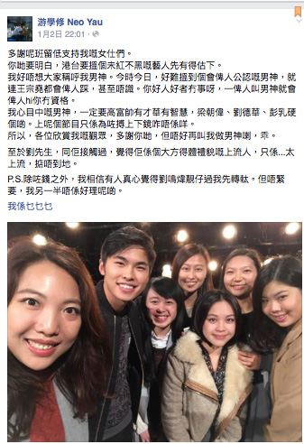 【now.com】前幾日電視節目《我係乜乜乜》又再度引起話題,節目其中一個環節由一班女生作評判,在游學修與劉鳴煒中2選1作男神。本來較多人選擇的游學修在揭曉身份後,女生紛紛轉軚選劉鳴煒,指他「成個Package」較好。昨日蘇麗珊在Facebook開腔撐男友,話覺得男友靚仔啲。