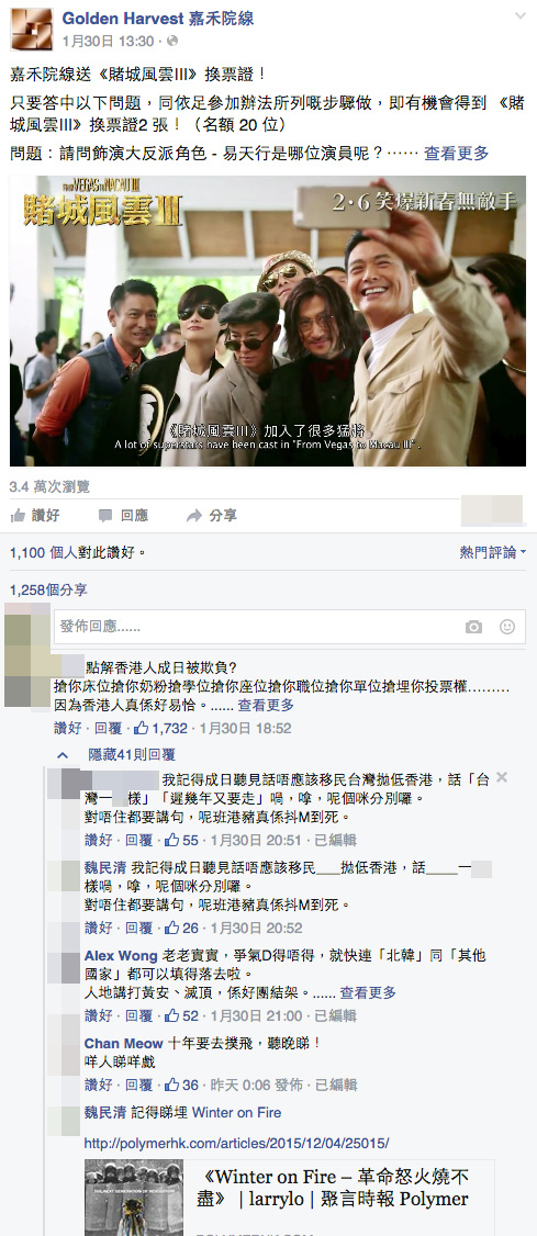 對這些言論,還有他們去電影的專頁留言搞事,我理解但講真只是得啖笑。唉,人活到一個年紀,可不可以成熟點?那個所謂導演,市場不在香港,細心想一下,你是哪位?有沒有可能杯葛到他?傻孩子,他恨不得你們這樣做呀,你越憤怒,他越爽。