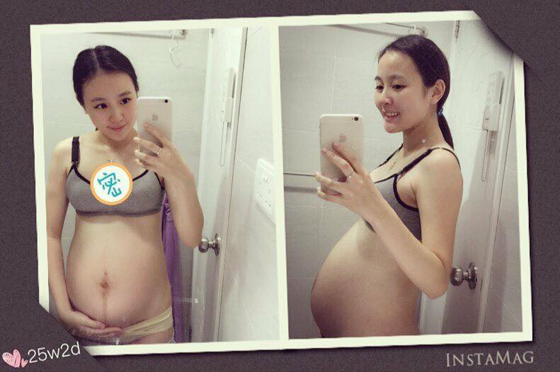 【now.com】李蘊年初和老公補擺喜酒,雖然件婚紗有少少鬆,但都唔係好覺大肚,尤其是擺酒後李蘊曬扁肚暗示沒懷孕。不過一月中時她又突然自爆已懷孕5個多月,之後就不時曬肚皮,現時已佗B六個幾月的她,個肚已經同個籃球差不多大喇!