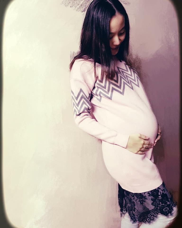 雖然個肚好大個,但她手臂依然纖幼,依然係瓜子臉蛋,點解而家啲星媽個個大肚都唔識肥嘅?有冇秘技分享畀其他準媽媽聽啊?