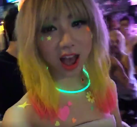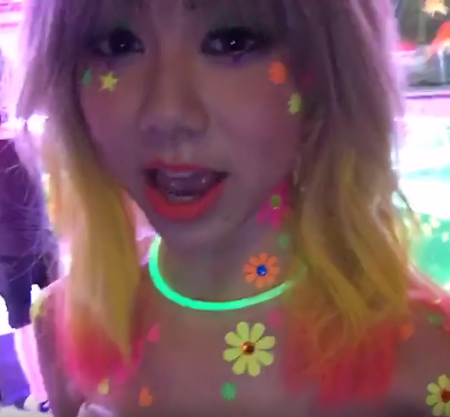 而超蓮的好友G.E.M.(鄧紫棋),昨晚同樣公開她的「新髮色」,她在Facebook直播自己身處金魚街完成寫真集拍攝,相信G.E.M.戴了一頂由金色漸變至髮尾黃橙色的假髮,十足一把雞毛掃。另外,她頭頂和頸都戴上螢光棒圈,又貼滿七彩螢光貼紙,加上青色眼影,造型夠晒突出,但是否美觀就見仁見智了。