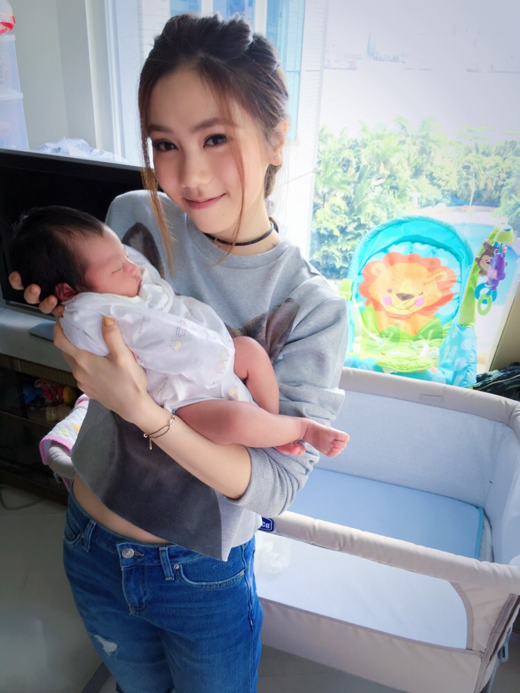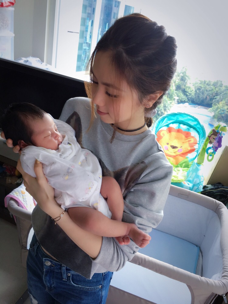 身為契媽的G.E.M.抱B女手勢相當純熟。(微博圖片)