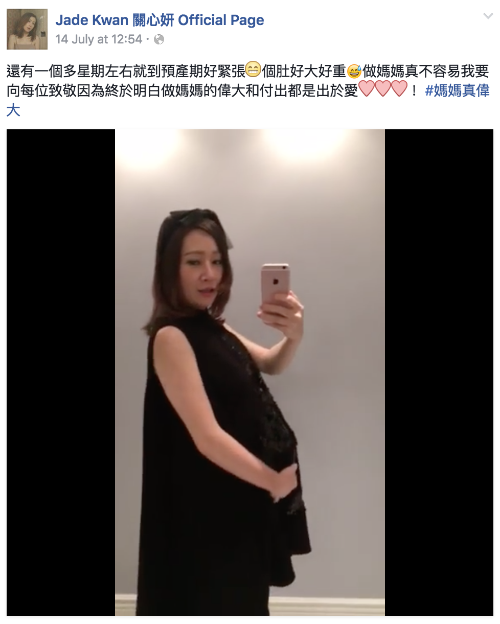 Jovia約重七磅,睇爸爸媽媽張貼的腳仔相都覺得非常活潑!不過媽媽Jade之前就真係好辛苦喇,約一周前才拍攝影片,同大家分享巨肚當中表示自己真係好緊張、好辛苦,講講下連平時唱開歌的都喘氣,Jovia大個女真係要好好報答媽媽的愛呀!