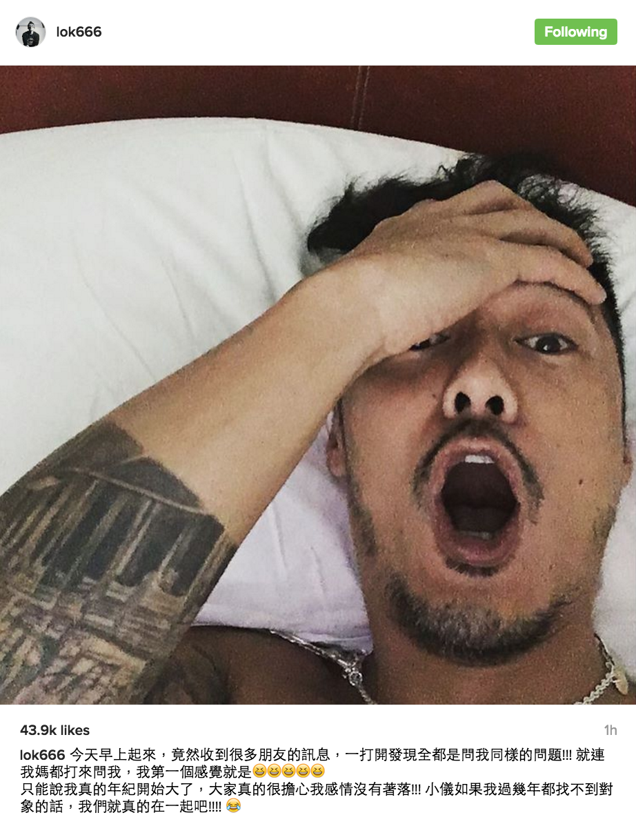 而余文樂就今朝瞓醒收到朋友訊息才知道相關報道,他更加收到媽媽關心的電話。余文樂直言可能是年紀開始大,大家都擔心他的感情沒有著落。為免大家繼續亂諗,余文樂最終向小儀許下「愛的承諾」:「小儀如果我過幾年都找不到對象的話,我們就真的在一起吧!」