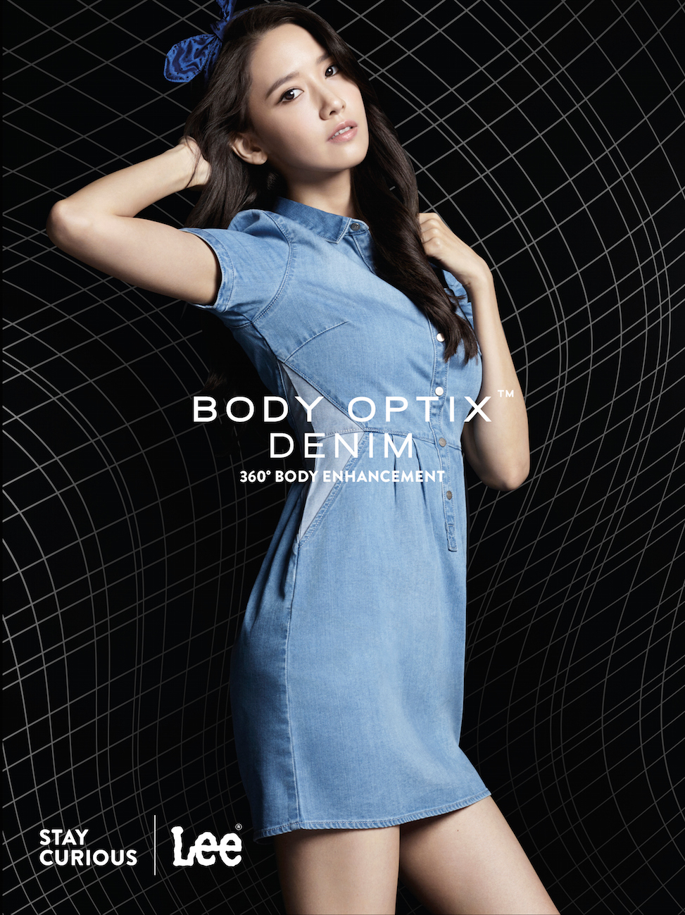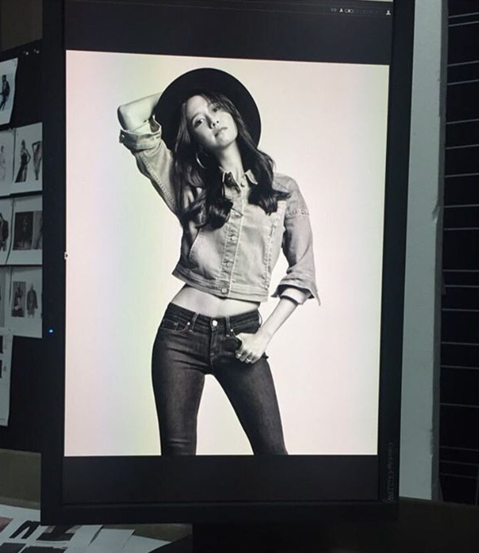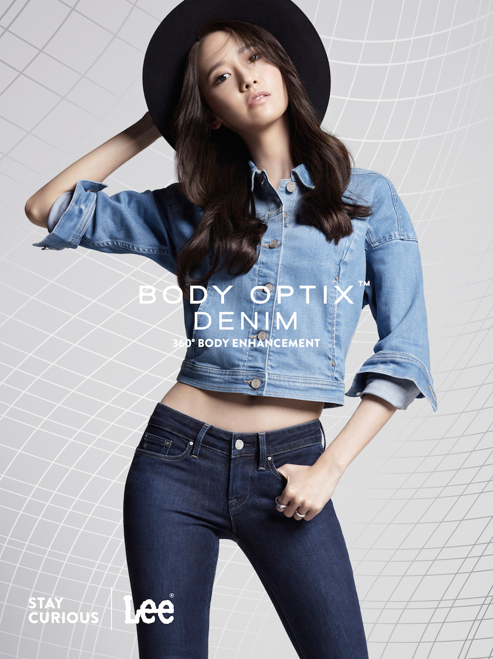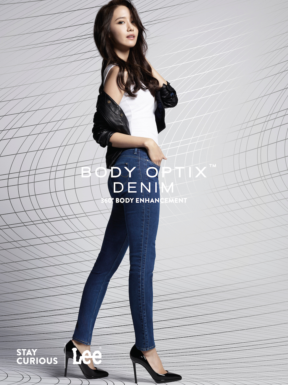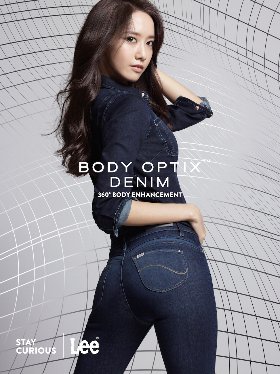 原來YoonA最近答應了國際牛仔服飾品牌Lee的特別邀請,成為首位大中華區女代言人,當日正為品牌拍攝全新系列BODY OPTIX™的宣傳照。據YoonA所說,她身上的牛仔褲是Lee與美國VF Design Science Lab的精心傑作,利用視覺科學原理和精準的光影、曲線塑形技術,重新刻劃了她的體型輪廓:「我覺得尤其適合怕啤梨身材的亞洲女性,因為BODY OPTIX™可以幫手塑造3D立體輪廓、理想體態、性感翹臀以及修長雙腿!」