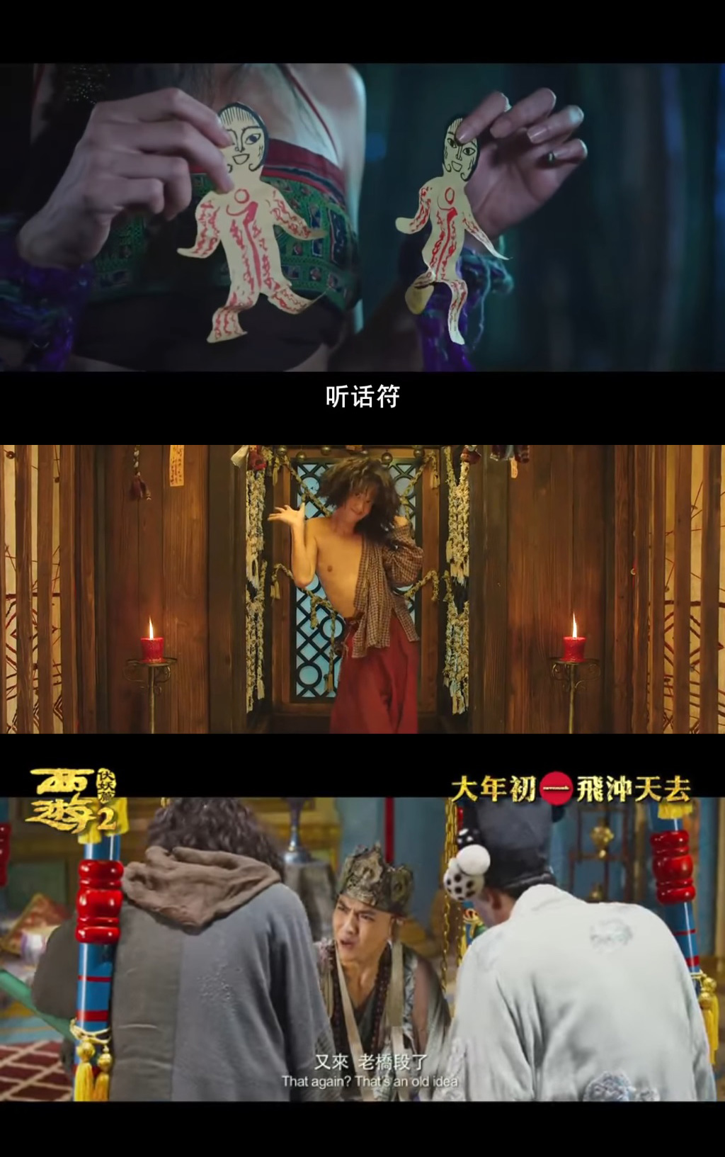 唐文龍在帖文中表示介意角色描寫和特技過多,其實個人更介意戲中笑料不停既推陳又出陳。首先,向幾位師徒頒發終身成就獎與後宮佳麗三千的肥腫難分,明顯就是《大內密探零零發》的經典情節,今次重現。一句「唔通我學過如來神掌又話你聽」正是《功夫》的經典對白,亦有重現,還講足兩、三次。更明目張膽是「聽話符」,這是《西遊‧降魔篇》的一記殺着,今次不單重用,還在對白中交代是擺明車馬地重用,有種王晶在《精裝追女仔3之狼之一族》入面,重施收縮水變青春丸的感覺,很是無癮。