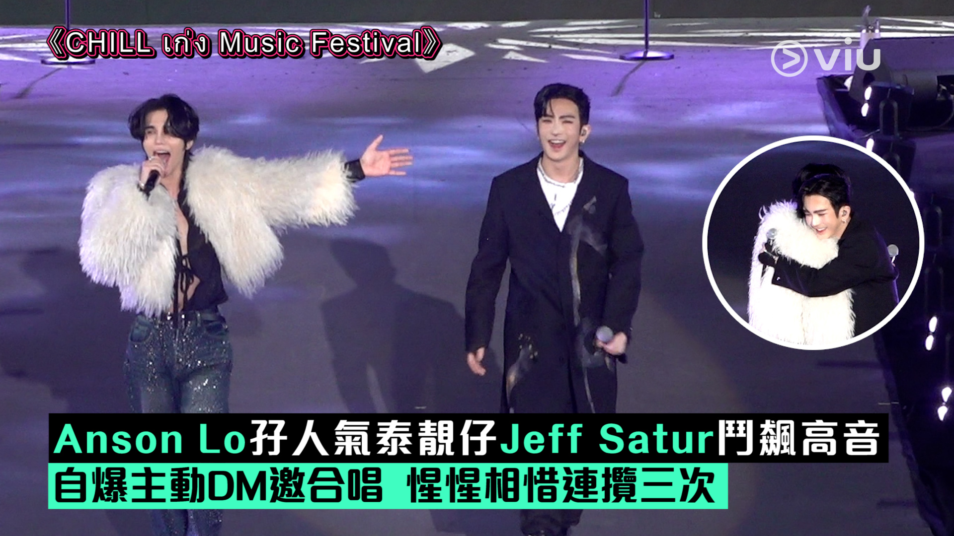 【Viu】今晚喺新場啟德體藝館舉行嘅《CHILL เก่ง Music Festival》,又點少得教主Anson Lo呀!佢同人氣靚仔泰星Jeff Satur分別以廣東話同泰文合唱對方嘅《神隊友》同《Ghost》,仲鬥飆高音,正到裂!