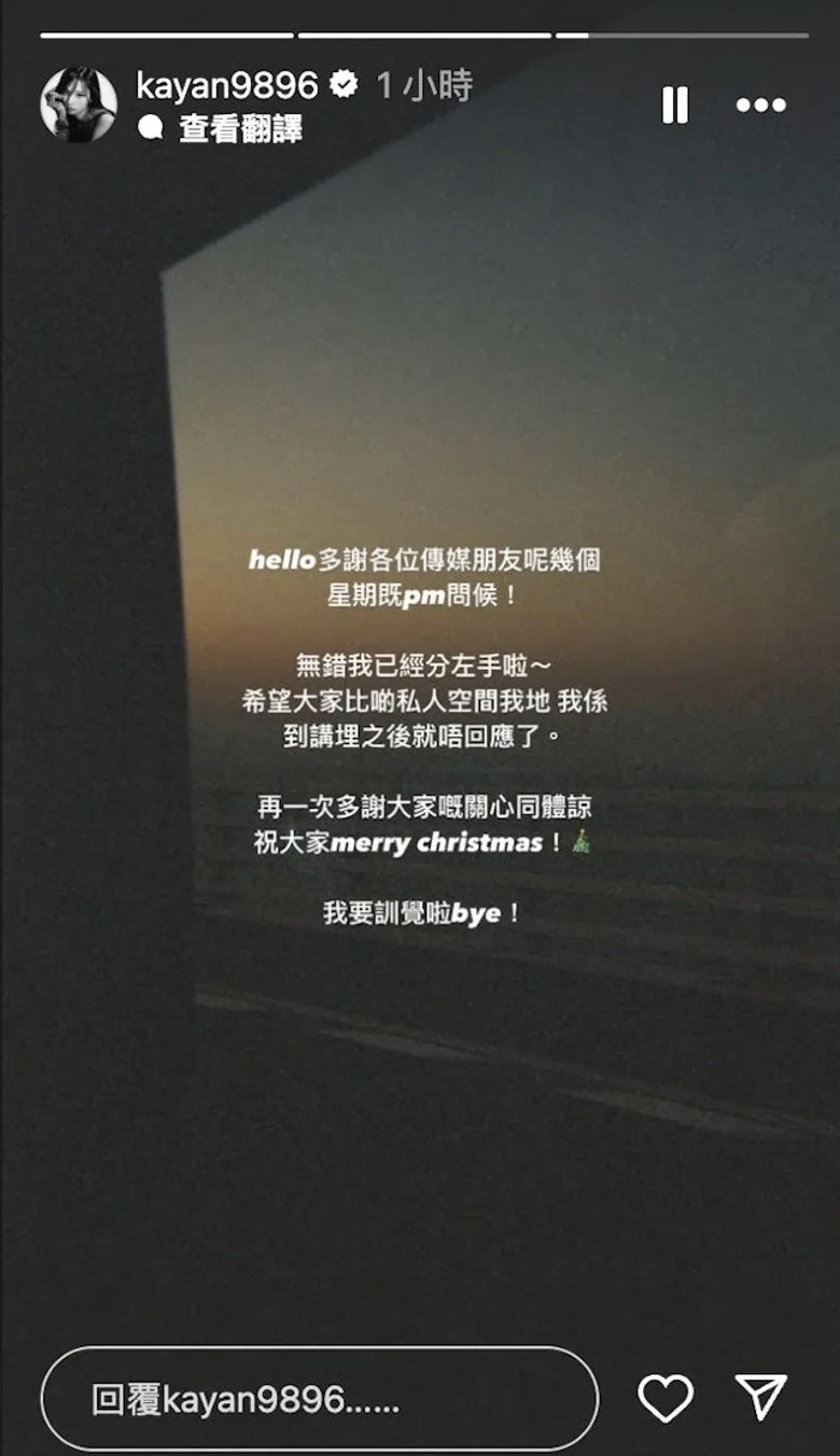 吳家忻kayan9896宣布與富三代男友分手 深夜發文:無錯我已經分咗手啦